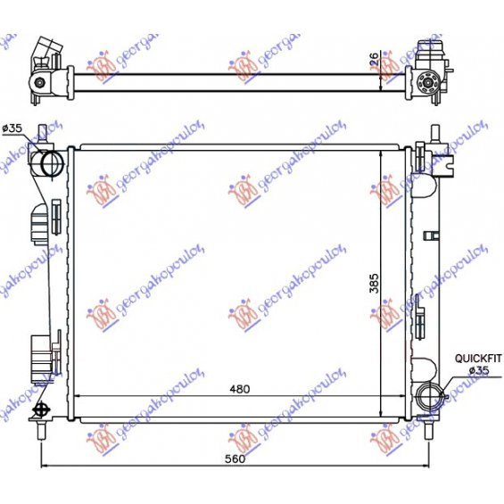 RADIADOR 1.1-1.4 CRDi MANUAL DIESEL (480x380x26) (FABRICACIÓN EN TURQUÍA)(KOYO) KIA RIO H/B 11-14