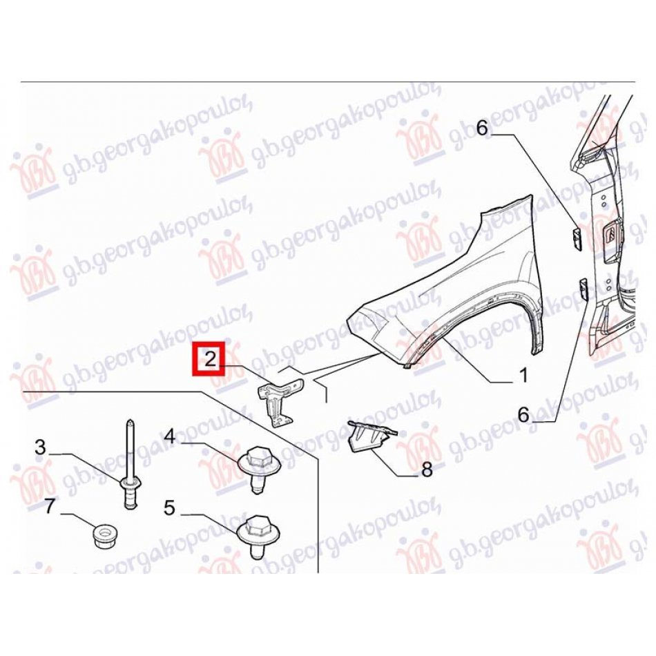 SOPORTE SUPERIOR DE ACERO PARA ALETA DELANTERA(O) ALFA ROMEO JUNIOR 24-