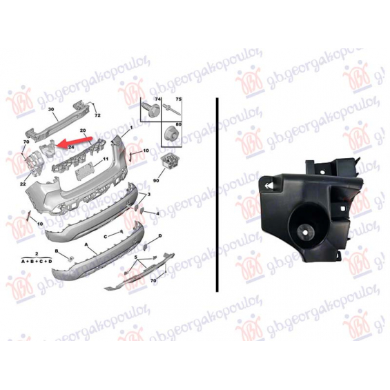 SOPORTE DE PLÁSTICO DEL PARACHOQUES TRASERO (DEBAJO DE LA LUZ TRASERA) CITROEN C4 20-