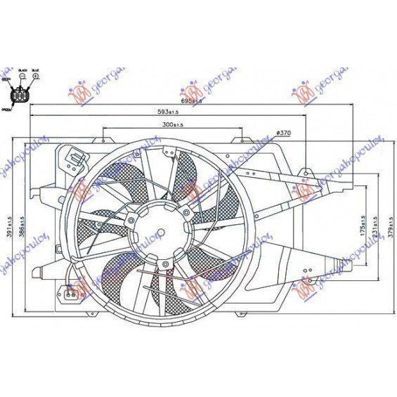 VENTILADOR SOLITARIO +A/C(390MM)(270W) (4 PINS) FORD FOCUS 98-04